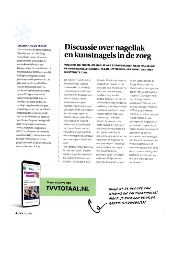 Volgens de richtlijnen mag je als zorgverlener geen nagellak of kunstnagels dragen. Maar het bewijs hiervoor lijkt niet sluitend te zijn.